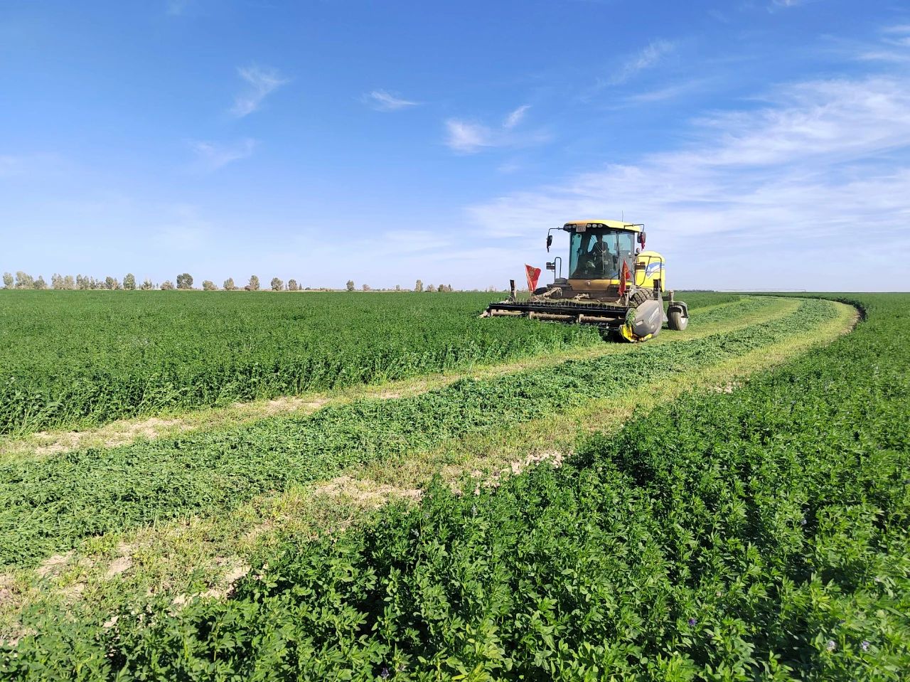 亚盛田园牧歌草业集团公司及时掌握近期气象数据资料,抢抓时间,协同推进,力争圆满完成头茬苜蓿收获工作,打好全年牧草收获的“第一仗”。